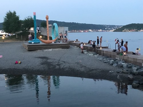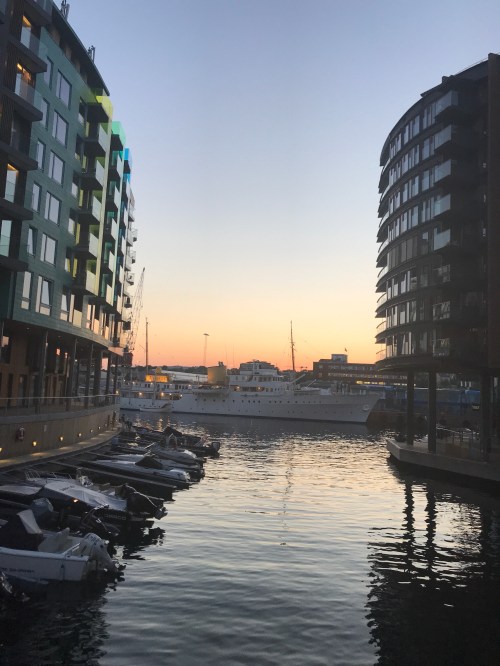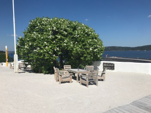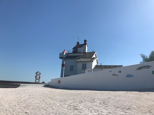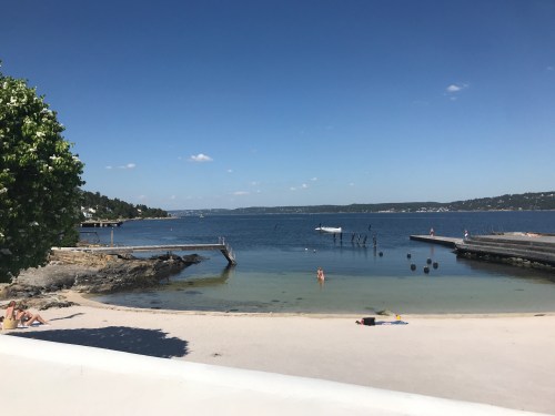 Heute waren wir in Verden’s End, eine Halbinsel die auf der Westseite nach Süden in die Mündung des Oslofjords in das Skagerrak reicht. Von der ältesten Stadt Norwegens – Tønsberg – geht es etwa 25 km über Inseln nach Süden bis es nicht mehr weiter geht -der Welten Ende halt… 🙂 Nach einem kurzen Spaziergang vom Parkplatz aus kommt man an Sturmumtoste glatt geschliffene Felsen. Nun ja, bisher war es so. Heute nicht… glattes Meer, kaum Wellen, eine leichte Brise… Nach dem wir auf den Schären (Skandinavisch für kleine Felseninseln) eine etwas windgeschützte Mulde gefunden haben lagen wir ein Weilchen in der Sonne bis zu „knusprig braun“ gebrannt. 🙂