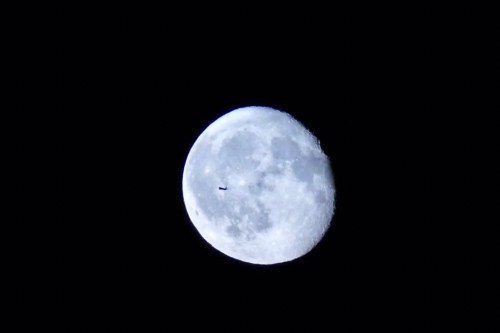 Schnappschuss mit Flugzeug vor dem Mond