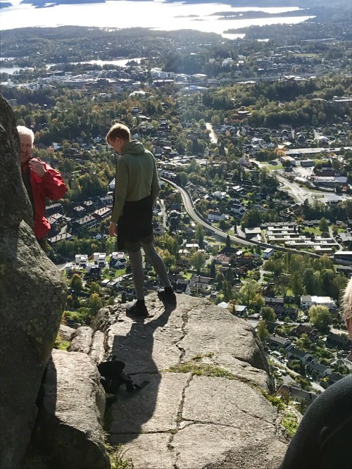 Am Aussichtspunkt waren wir überrascht woher die ganzen Leute kamen, dann stellte sich heraus, dass es noch einen steilen, teils über Stiegen, Anstieg von Kolsås aus gibt. (Da sind wir dann runter und unten zurück)