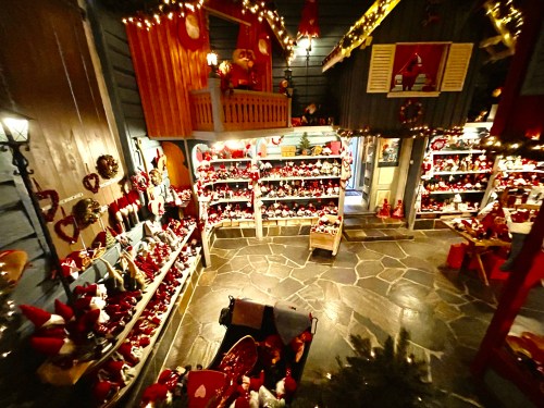 Dort gibt es wie bei Käthe Wohlfahrt in Rothenburg ob der Tauber ganzjährig Weihnachtsdekoration zu kaufen, allerdings im norwegischen Stil.