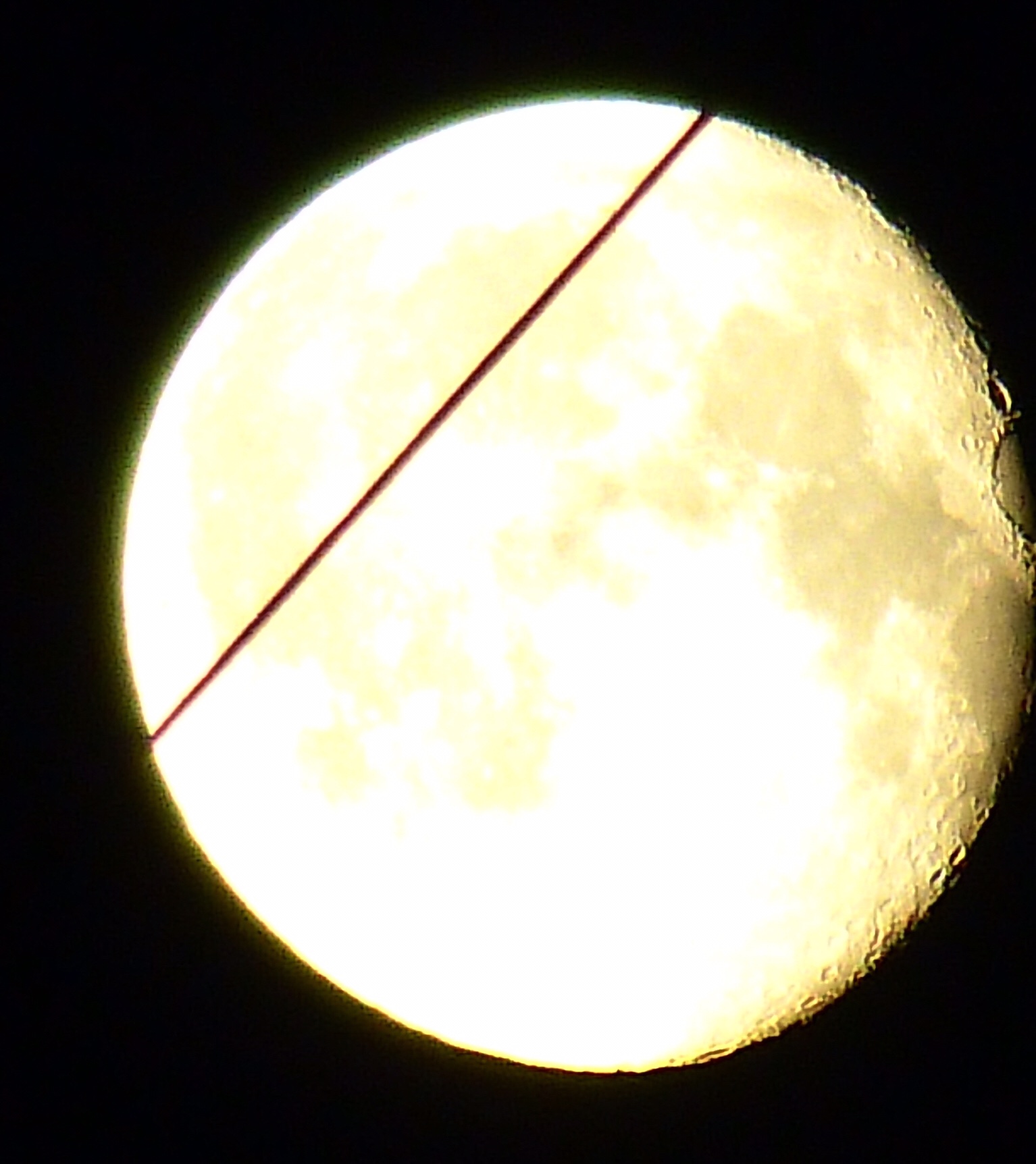 Auf dem Foto (Langzeitaufnahme von 30 sek) ist von rechts Richtung untere Bildmitte eine gepunktete Linie die von den Positionslichtern eines Flugzeugs stammt.